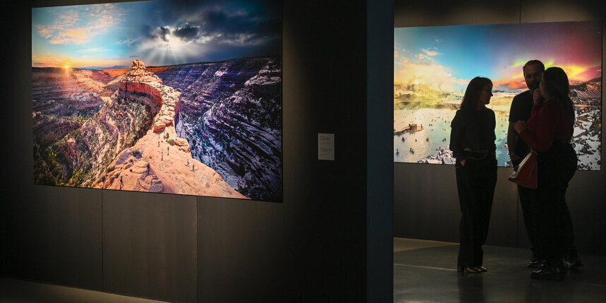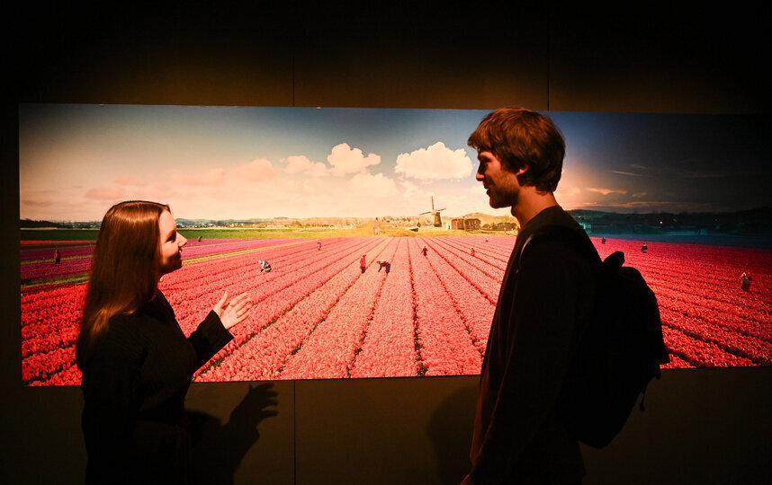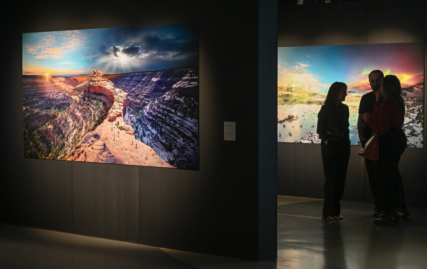 "Это не одна фотография, это порядка 1500 фотографий, которые дальше человек с помощью компьютерных программ соединяет в одно единое полотно", – рассказывает руководитель арт-отдела музея Павел Маркайтис. Каждую такую работу можно рассматривать очень долго, постоянно находя новые, не замеченные с первого взгляда мини-истории.