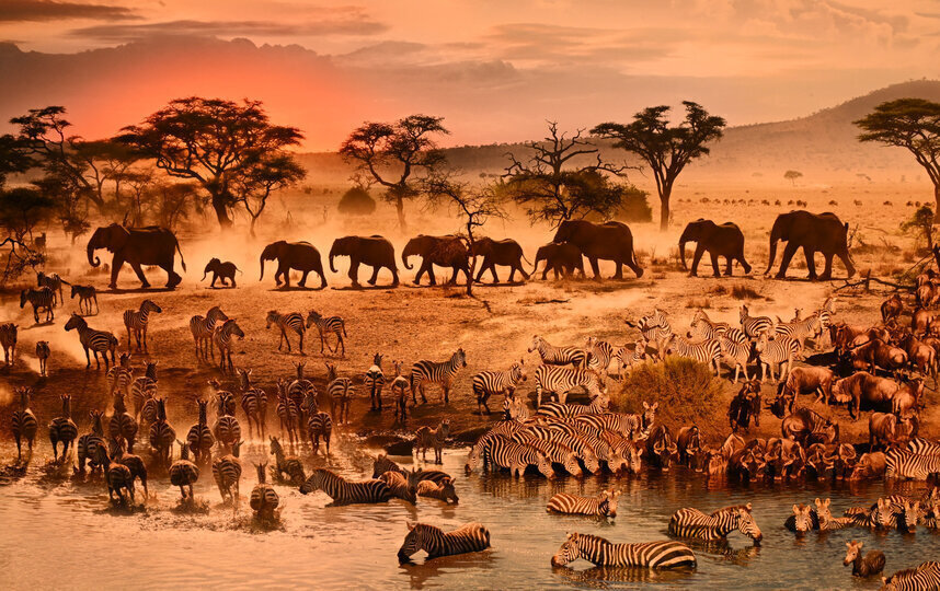 Особый интерес вызывает снимок из Саванны, где у водопоя мирно сосуществуют хищники и их жертвы после долгой засухи. Кажется, что животные понимают нечто, неочевидное для нас, людей: таким ценным ресурсом, как вода, необходимо делиться со всеми.