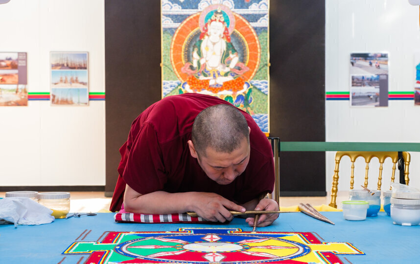 Главным экспонатом экспозиции стал песочный дворец Будды Ваджрасаттвы, олицетворяющего чистоту и очищение кармы.