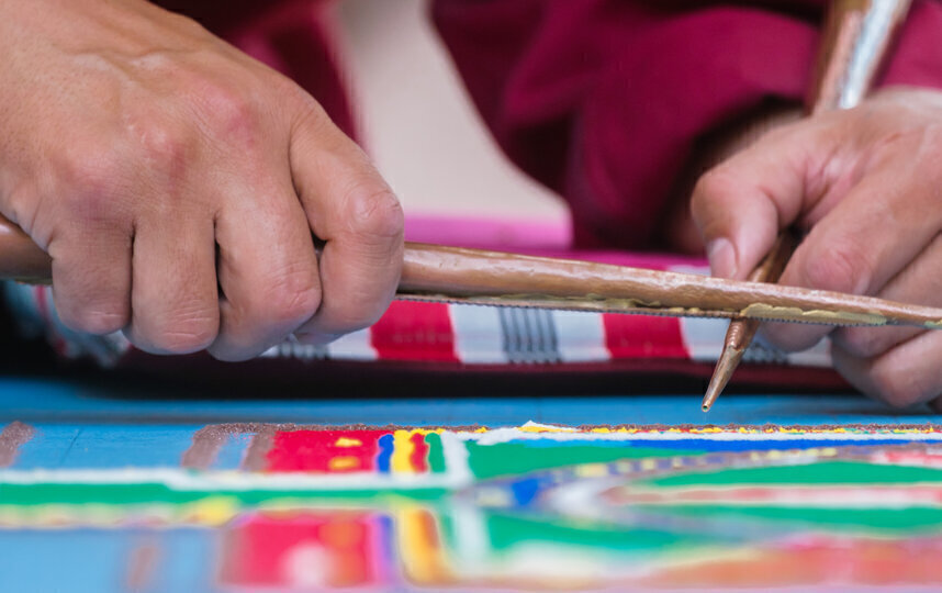 Ламы используют для строительства мандалы специальные медные трубочки