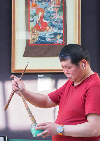 – Чтобы возвести песочный дворец Будды Ваджрасаттвы, нам понадобилось примерно пять килограммов цветного песка, – рассказывает Соёл лама. – Половину привезли из Гоманг-дацана, который находится в Индии, остальное – из Бурятии. Во втором случае материал для строительства мандалы получали из байкальских камней. Их собрали, потом раздробили, промыли пыль, высушили. Затем покрасили и снова высушили.