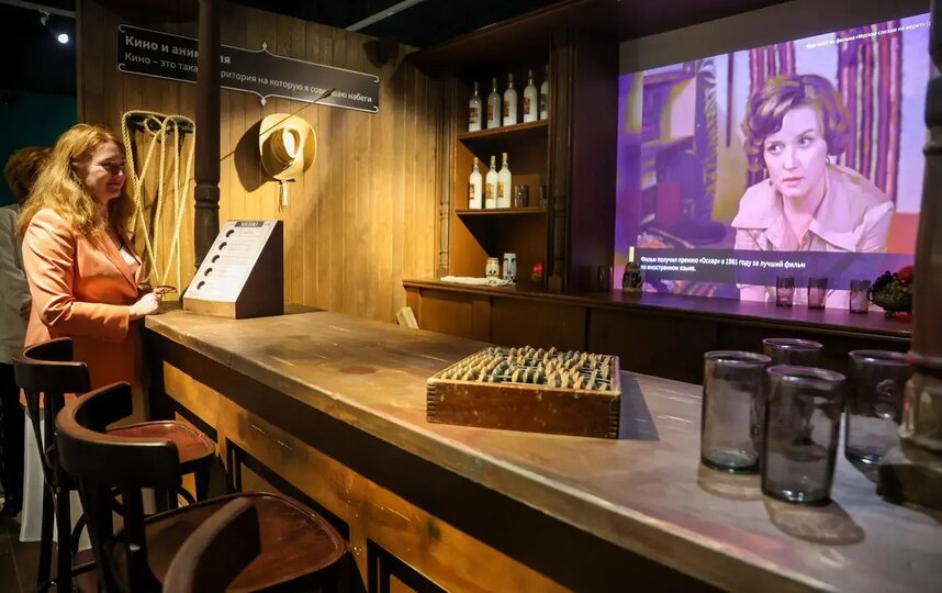 А дальше – "Современник", МХАТ, открытие собственного театра-студии, ведущие роли в театре и кино, режиссура и, конечно, озвучивание персонажей мультфильмов, голоса которых звучат на выставке: кот Матроскин, Барбос, Ёжик, Волк... Можно заглянуть в воссозданный бар из фильма "Человек с бульвара Капуцинов" и насладиться "блюдами" из интерактивного меню с фрагментами самых известных ролей Олега Павловича, а после посидеть на диване из "Обломова".