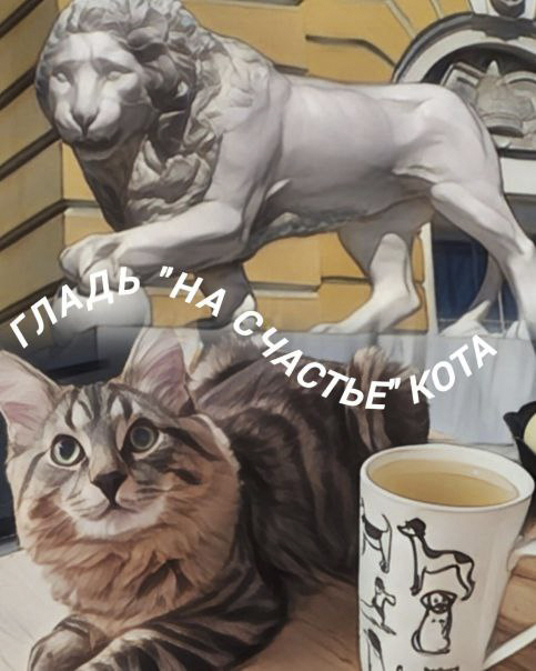 Моя мама работает в Музее городской скульптуры, так что я с раннего детства знаю: памятники трогать нельзя. Я хорошо рисую, и мама предложила мне принять участие в конкурсе графических плакатов. Я как раз в это время гладила кота Дарси. И мне пришла идея сравнить нашего Дарси с одним из львов Санкт-Петербурга. Ведь действительно лучше гладить на счастье живого кота, чем бронзового. У меня собирательный образ, но самые страдающие, как мне кажется, это львы на Дворцовой пристани. На них все садятся, трогают руками, гладят морду и гриву. Недавно их отреставрировали. Я очень надеюсь, что люди будут бережнее относиться к памятникам.