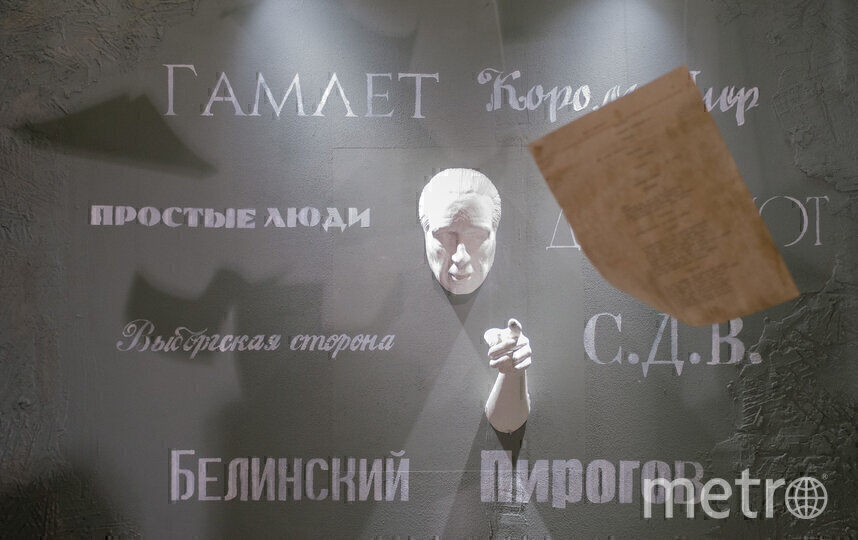 Одно из пространств выставки превратили в гримёрку артиста и наполнили её артефактами из семейной коллекции семьи Смоктуновских: афишами, программами, буклетами к спектаклям и фильмам.