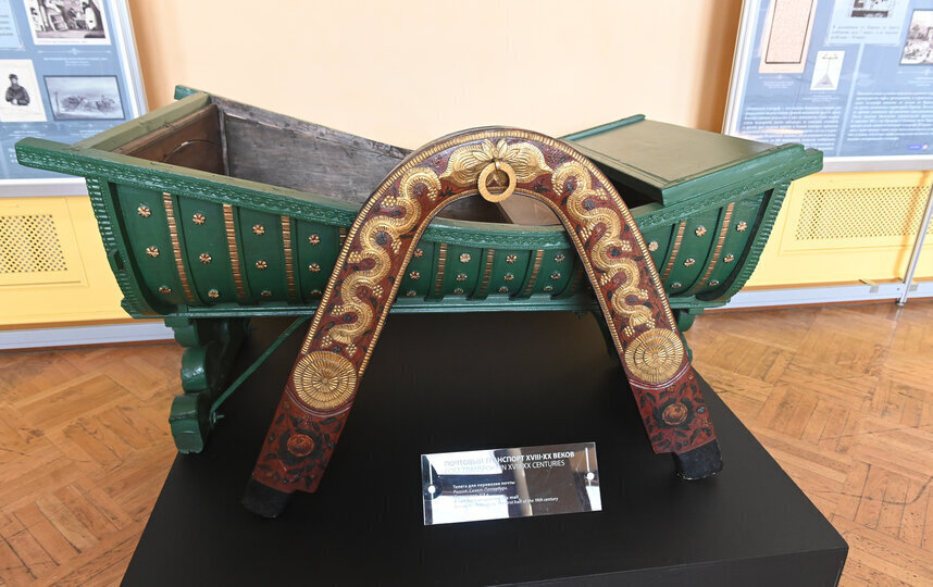 – У нас здесь очень интересный экспонат – почтовая телега XVIII–XIX веков. На ней герб Российской империи, видимо, использовалась для фельдъегерской связи, – говорит сотрудница музея.