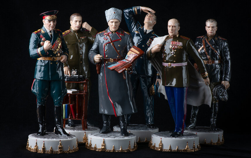 Полковник запаса, кандидат военных наук Алексей Колодко много лет коллекционирует фарфор. Специально для выставки его команда создала 10 скульптур советских военачальников.