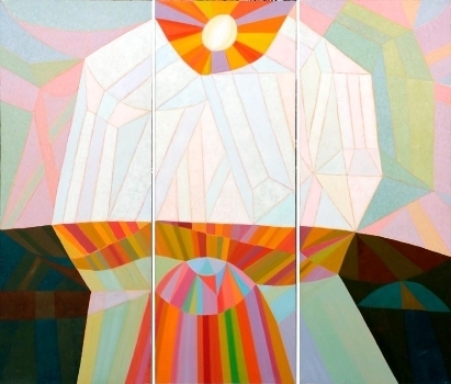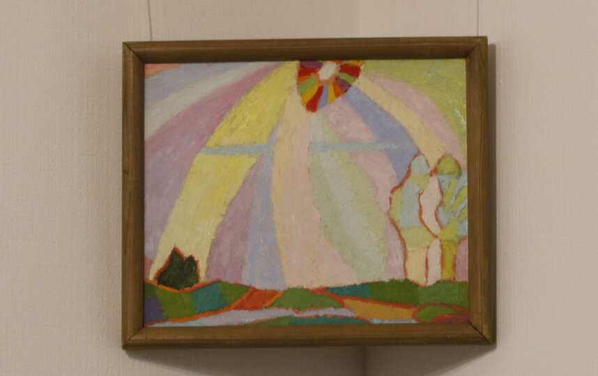 "Пейзаж Кристалл" – работа, уже пропущенная через себя, с большим художественным опытом. Здесь уже и сочетания цветов проработанные. Она кристаллическая, взвешенная, – рассказывает Настя Зеелова. – Мне кажется, это вообще основа авангарда, где в каждом луче проявляется личность будущих художников.