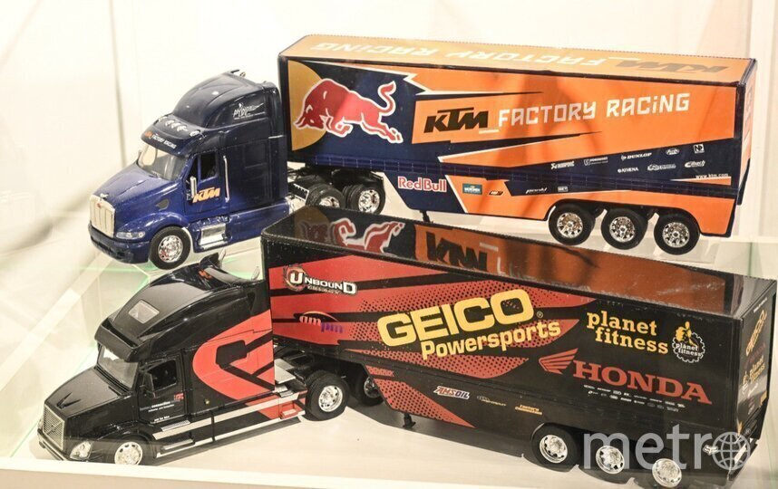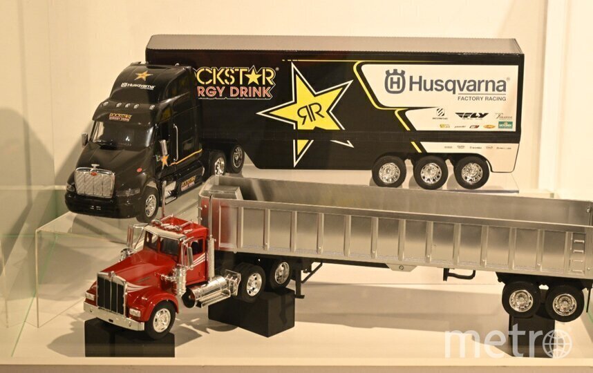 – В моей коллекции около 500 моделей, на выставке от меня – 34. Я привёз сюда гоночные транспортёры XX века – автомобили для перевозки болидов с трассы на трассу. Скоростные авто не сертифицированы для передвижения по дорогам общего пользования, поэтому использовался грузовой транспорт, – рассказывает журналисту Metro Евгений Рулев.