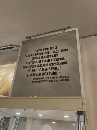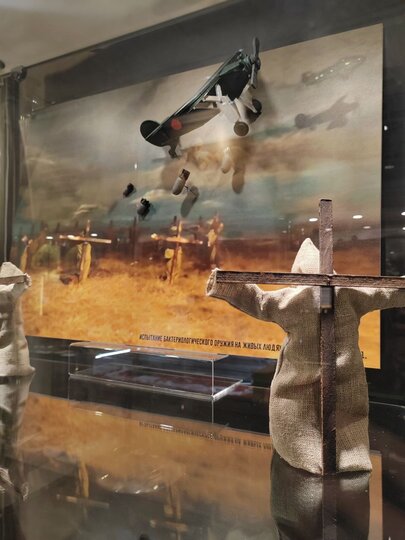 На экспозиции представлены баночки с питательными средами, в которых культивировались смертоносные бактерии, аппараты для введения отравляющих веществ и заражения особо опасными инфекциями, образцы ядов. Посетители узнают как в "лаборатории смерти" изготавливались "орудия истребления" – бомбы Исии, начинённые бактериями чумы. В оформлении выставки использованы фотографии Хабаровского процесса и карикатуры на японских военных преступников.