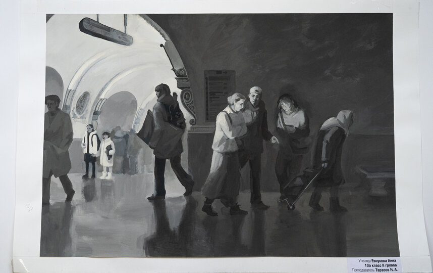 Некоторые опирались на исторические сведения о нашей подземке – это отразилось в рисунках в технике гризайль. Одними из немногих, кто выбрал эту сложную концепцию, стали ученицы художественного лицея имени Б. В. Иогансона.