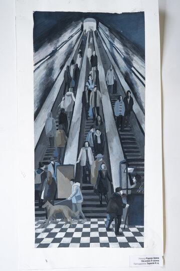 Как раз этим и вдохновилась лауреат проекта "Петербургское метро: вчера, сегодня, завтра" Арина Радчук. Шестнадцатилетняя жительница Стерлитамака изобразила движение эскалаторов. Невольный зритель будто стоит в холле станции и наблюдает, как люди спешат на работу или учёбу.