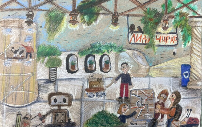 В стенах исторического здания императорского общества поощрения художеств, ныне Союза художников, собраны яркие и несколько фантастические работы юных творцов. Дети без колебаний окунулись в мир фэнтези, изображая на листе A4 космическое будущее метро.