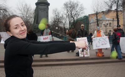 Барабанами и файер-шоу пикетчики на Чистых прудах пытались привлечь внимание москвичей к проблеме вырубки леса на острове Утриш, который находится рядом с Анапой. Милиционеров поначалу очень смутили барабаны и колокольчики пикетчиков, но защитникам природы удалось-таки усыпить бдительность стражей порядка своим миролюбивым видом. И у памятника Грибоедову зазвучала "шаманская" музыка.