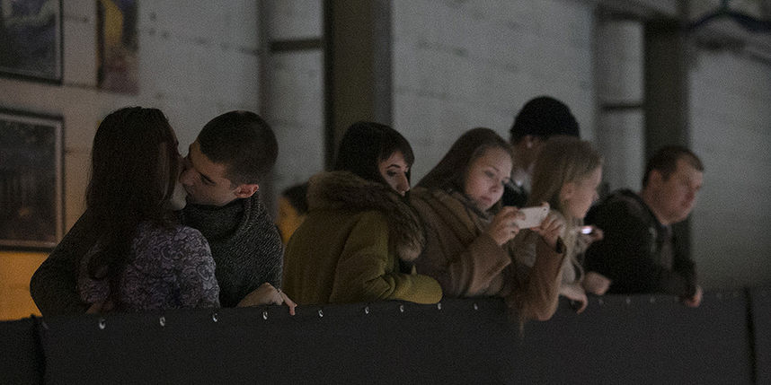 Очередь к залу на третьем этаже в галерее центра Artplay тянулась почти от самого входа: пенсионеры, школьники, пары с маленькими детьми.