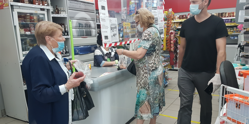 - Доля покупателей в масках и перчатках в столичных магазинах снизилась с 94 процентов в первые дни открытия магазинов до 68 процентов в середине июля.
