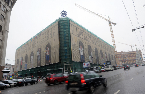 В центре Москвы в здании универмага "Детский Мир", которое находится на реконструкции, на двух этажах горит утеплитель.