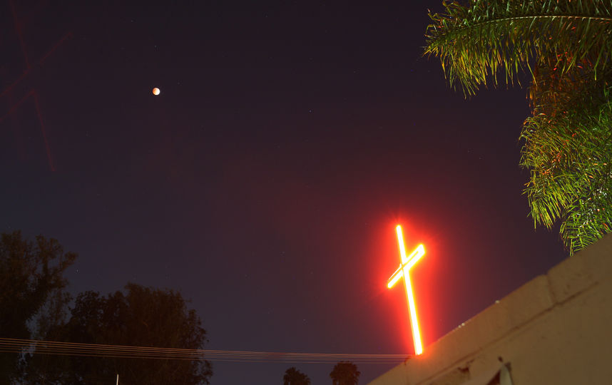 Затмение начнётся в 21.24 мск. Луна полностью войдёт в тень земли в 22.30, яркость сильно уменьшится и цвет изменится на красный. Все это время рядом, под Луной, будет необычайно яркий Марс.