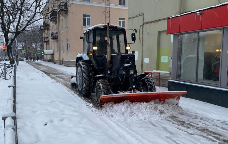 После морозных дней наступила более комфортная погода с мягким снегом. Теперь техника очищает заметенные тротуары, пешеходные зоны и магистрали.