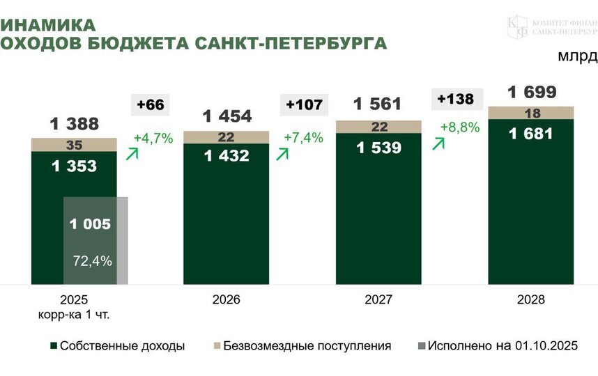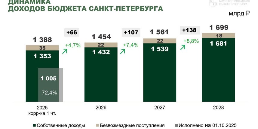 Губернатор Александр Беглов связал рост доходов с активной работой предприятий, укреплением налоговой дисциплины и повышением реальных доходов горожан. "Дополнительные ресурсы мы направляем на реализацию 10 приоритетов Петербурга, на самые чувствительные для людей сферы", – подчеркнул он.
