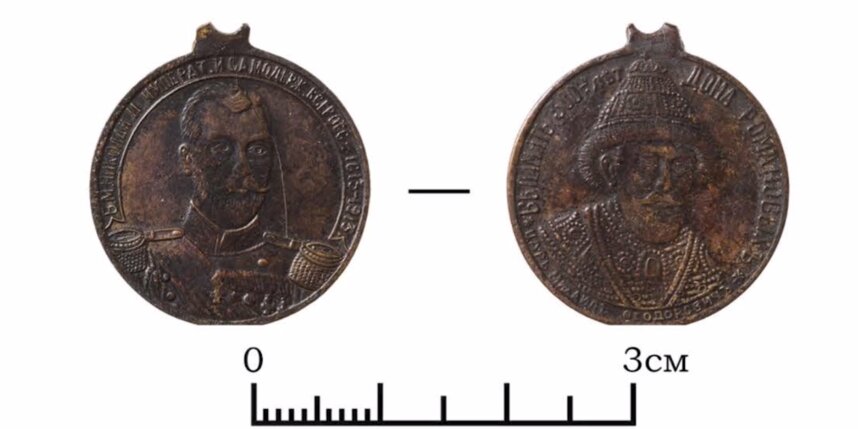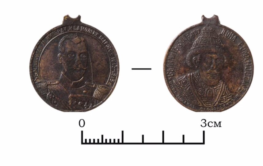 Также были найдены юбилейные медали, посвященные 300-летию династии Романовых и Русско-турецкой войне, и значки, принадлежавшие участникам Международного съезда пожарных, состоявшегося в 1912 году.