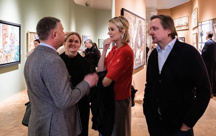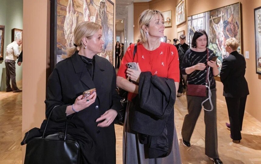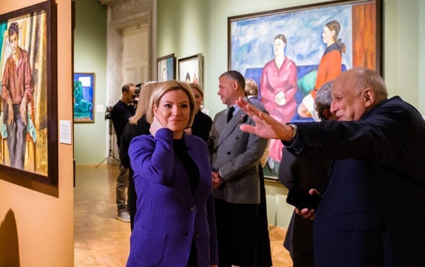 Открыли выставку министр культуры РФ Ольга Любимова, генеральный директор Русского музея Алла Манилова и правнуки художника: Артем, Анна и Надежда Михалковы.