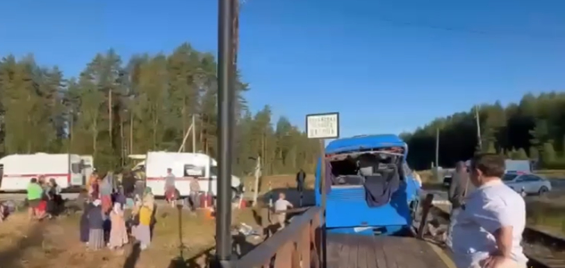 По данным регионального МВД по Санкт-Петербургу и Ленобласти, 4 августа в 06:21 туристический автобус, следующий в монастырь Александра Свирского, проезжая на запрещающий сигнал светофора, врезался в поезд на 254 километре по Мурманскому шоссе.
