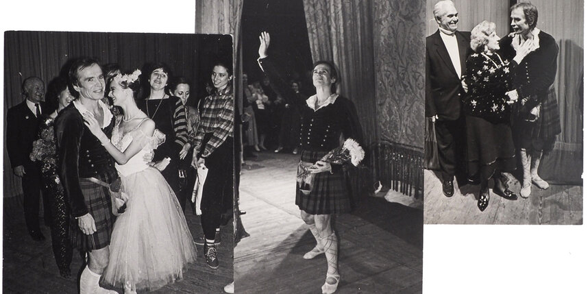 Артист балета и хореограф прибыл тогда в Ленинград для исполнения роли Джеймса в балете "Сильфида". Чёрно-белые фотоснимки были сделаны Валентином Барановским, который многие годы проработал официальным фотографом Мариинского театра.