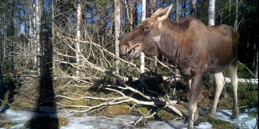 Как рассказал биолог Павел Глазков в своём телеграм-канале "Каждой твари по паре": "От наслаждения лось разомлел и томно прикрыл глаза: и вкусно, и весеннее солнышко пригревает..."