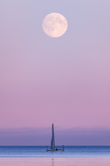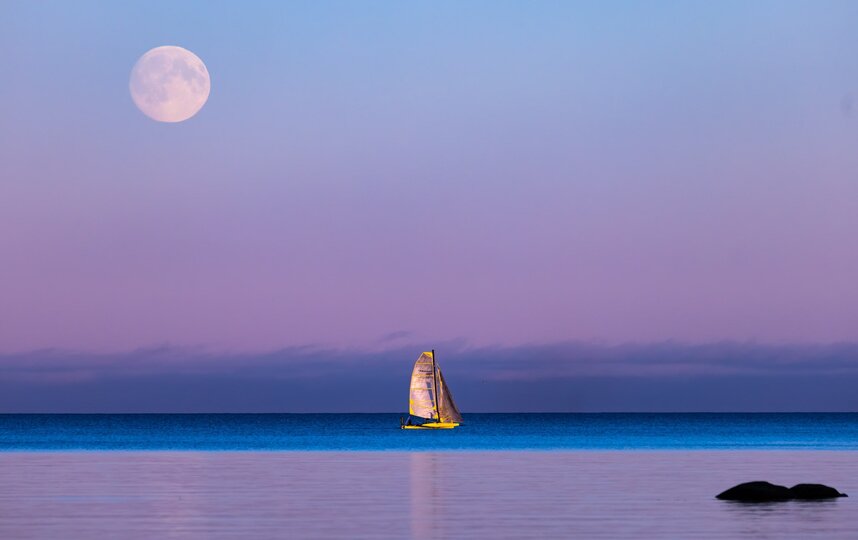 "Уже добравшись, было очень приятно поставить фотоаппарат снимать и разлечься поудобнее на пляже, насладиться тихими всплесками воды, безмятежностью и белой луной на восходе", – написала фотограф.