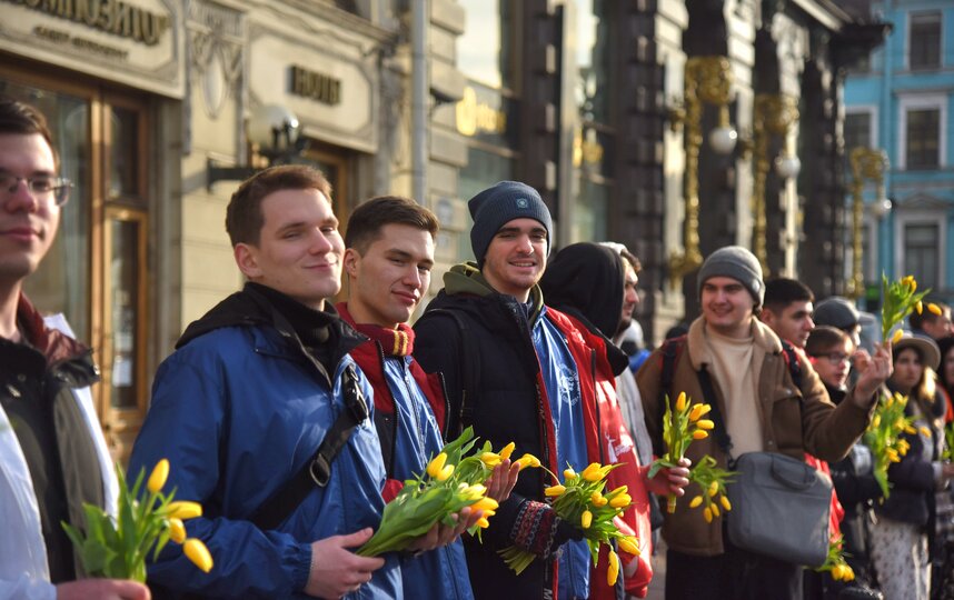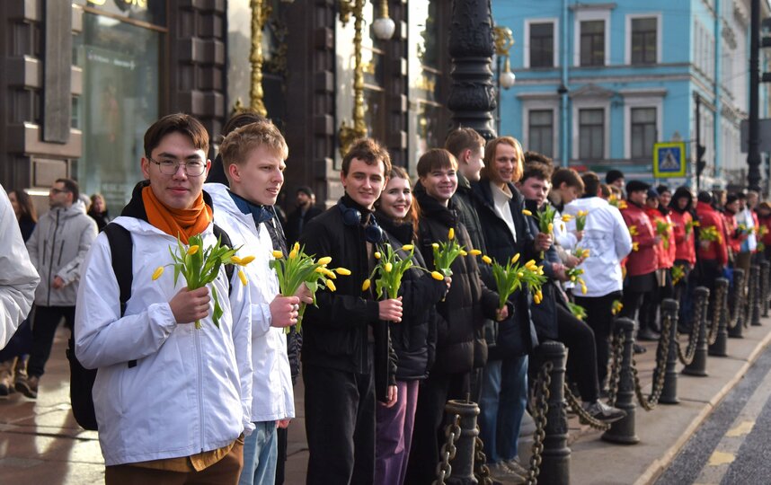 В Международный женский день Невский проспект превратился в настоящую аллею весны и доброты. Более 1500 неравнодушных ребят выстроились вдоль главной улицы города с яркими тюльпанами в руках, чтобы поздравить всех девушек и женщин с этим прекрасным праздником.