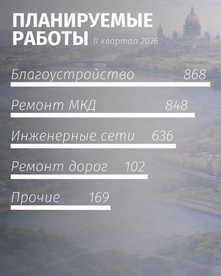 Государственная административно-техническая инспекция (ГАТИ) сформировала оперативную адресную программу работ в Петербурге на второй квартал 2026 года. В неё вошло более 2,5 тысяч объектов по всему городу. Об этом сообщил вице-губернатор Евгений Разумишкин.