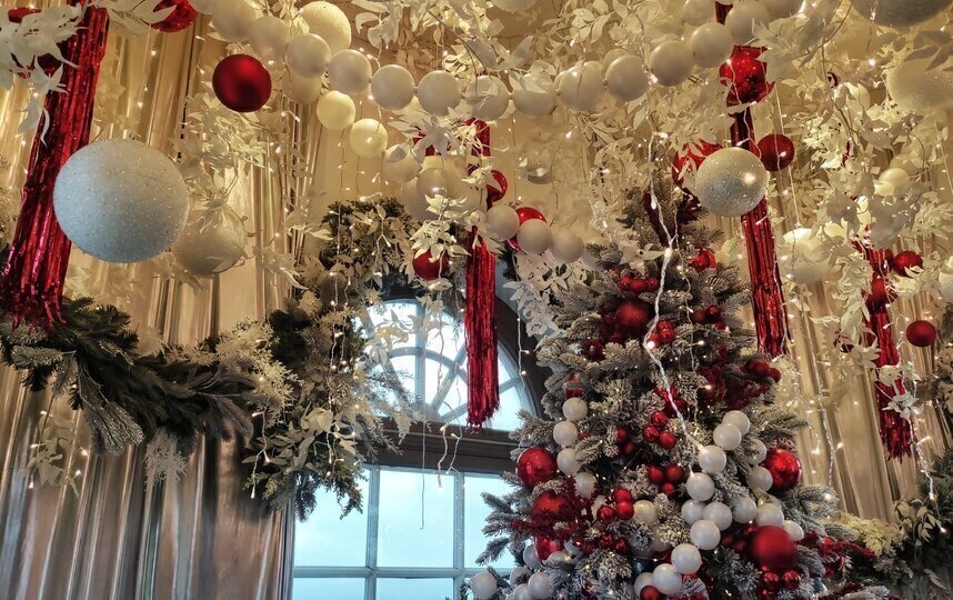 Внутреннее оформление Думской башни к Новому году и вид с обзорной площадки