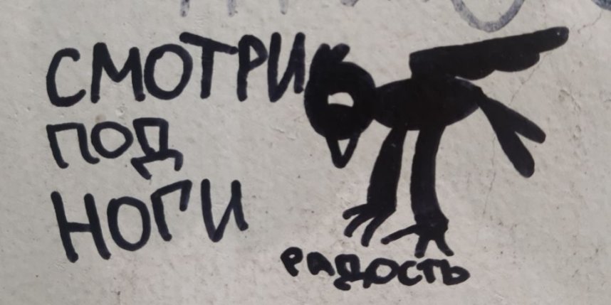 Каждый сантиметр дворика дома 53 на Литейном проспекте полон свободы, поэзии и открытости миру. Творчество начинается уже в арке – надписи и рисунки покрывают ее изнутри снизу доверху. По всему периметру сада расползлись стихи – свои и чужие, шутки, загадки, мотивационные пожелания, признания в любви – дорогим людям, городу и самой жизни…