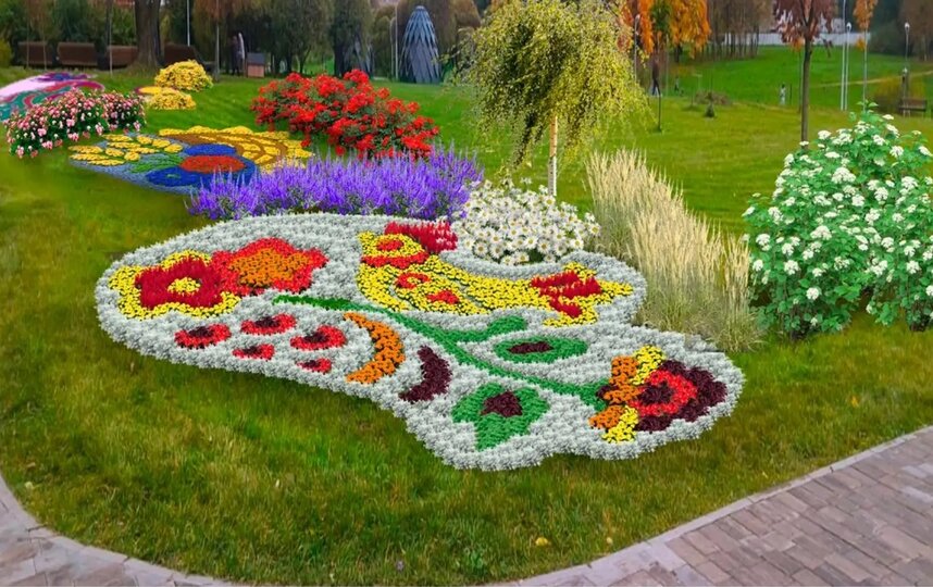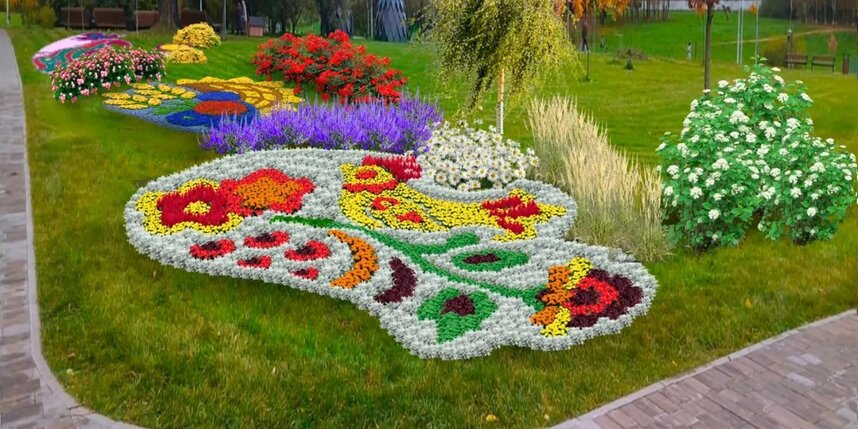 В Московском парке Победы тематический цветник расположится у входа на площадку аттракционов. Это будет яркая фотозона, вокруг которой развернётся живой триколор из однолетних цветов.