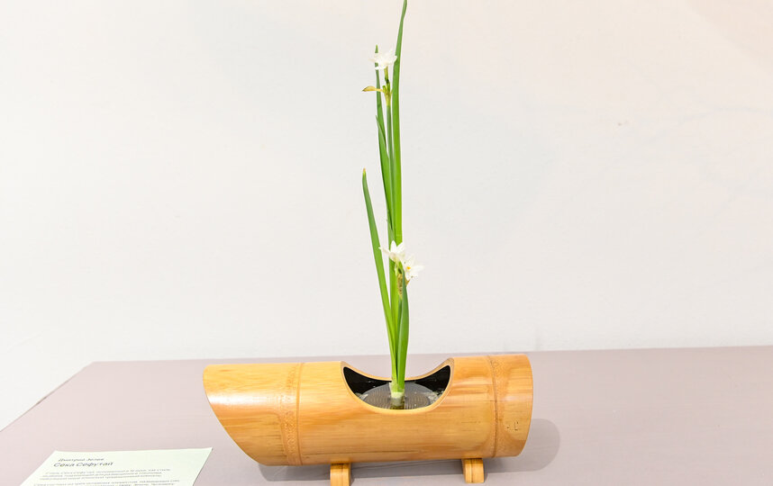 – Эта работа с нарциссами и мускари создана в стиле "сека сефутай". Время любования нарциссами в Японии с декабря по март, поэтому они считаются зимними цветами, – рассказывает Metro руководитель пресс-службы Ботанического сада Петра Великого Александра Медведева. – В этой композиции нас привлекает красота двух нарциссов. В европейской флористике был бы целый букет. Но в икебане мастер направляет ваш взгляд. Здесь вы видите эти два цветка максимально ясно. Можете полюбоваться каждым изгибом и каждым листиком.