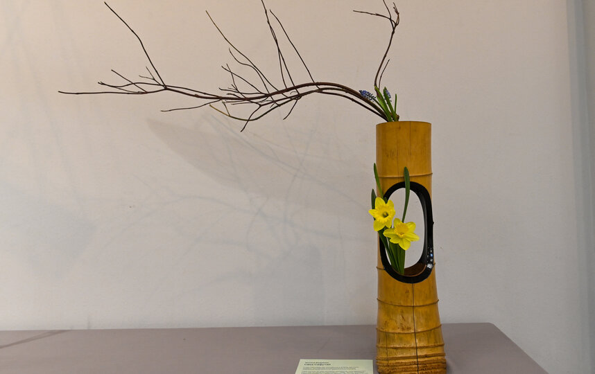 Икебана с ярко-жёлтыми цветами олицетворяет приближение весны.