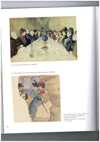 – В Ницце он вместе со своей приятельницей, художницей Александрой Хотиянцевой, занимался мифотворчеством. В гостинице, где жил Чехов, они как-то увидели баронессу и её дочь. У них были такие причёски высокие, напоминающие рыбу хвостом вверх и вниз. И вот они придумали и зарисовали такую историю: будто Чехов выиграл в казино и попросил руки этой богатой наследницы. Есть прямо картинки, как они сидят друг напротив друга, как он делает предложение, как они приезжают в Мелихово. Этого не было! Писатель и художница просто это придумали, им было смешно, и они нарисовали эти картинки, – говорит Ольга Гавва.