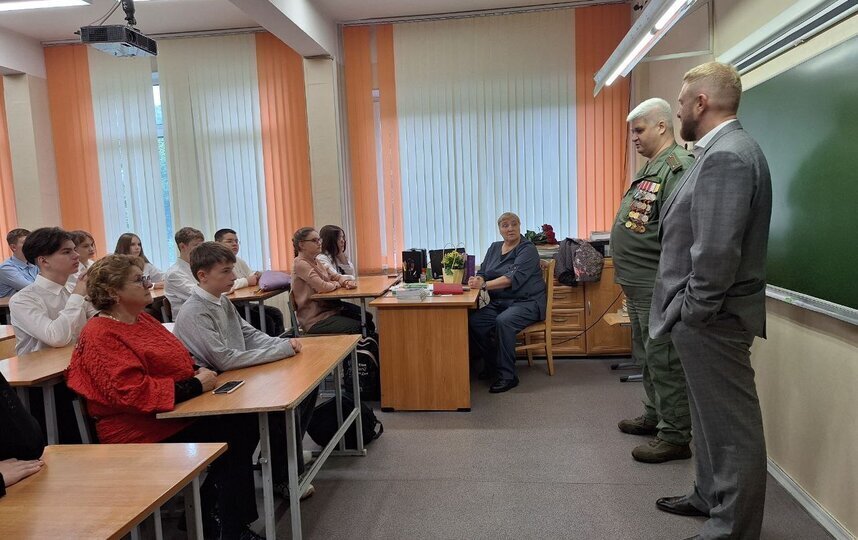 Сразу после линейки гости провели урок мужества для восьмиклассников. Они рассказали про историю 1486-го гвардейского мотострелкового полка.