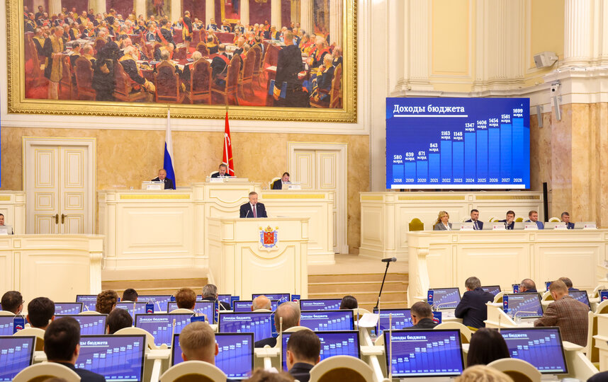 В среду, 29 октября, в Законодательном собрании Петербурга состоялось первое чтение проекта городского бюджета на 2026-2028 годы. Во время него губернатор Александр Беглов заявил, что в следующем году доходы города вырастут до 1 трл 454 млр рублей, передает пресс-служба Смольного 29 октября.