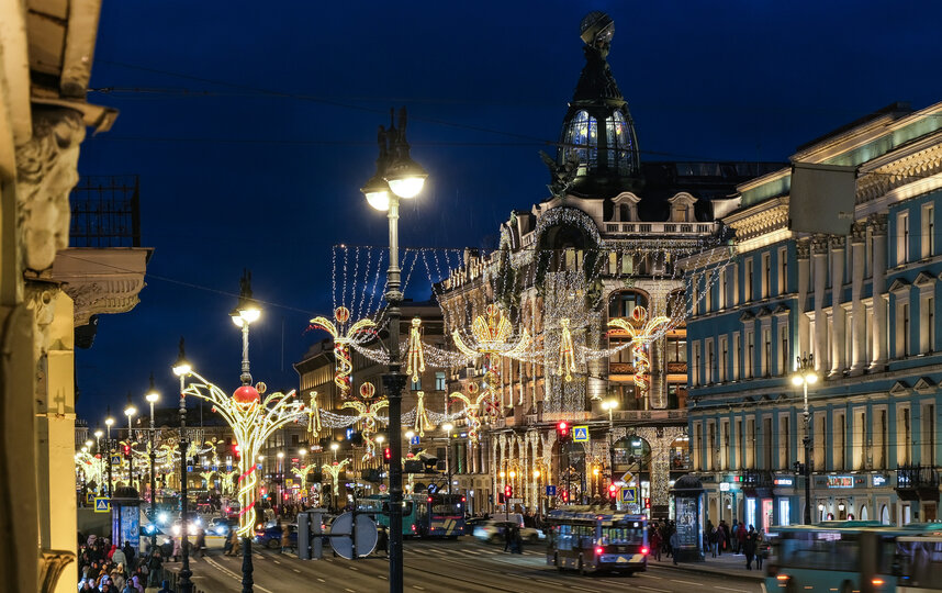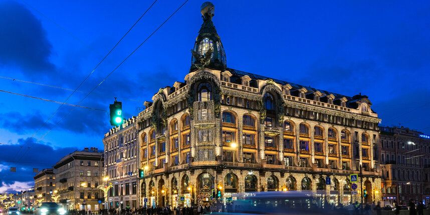 Как сообщила 25 декабря пресс-служба Смольного, контуры и элементы Дома Зингера в Петербурге теперь подчеркивают 539 светодиодных ламп.
