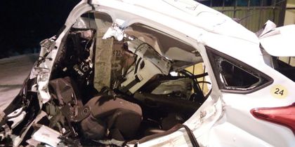 После столкновения с "Ниссаном", "Фольксваген" отправился в пьедестал сфинкса у моста через реку Фонтанку.