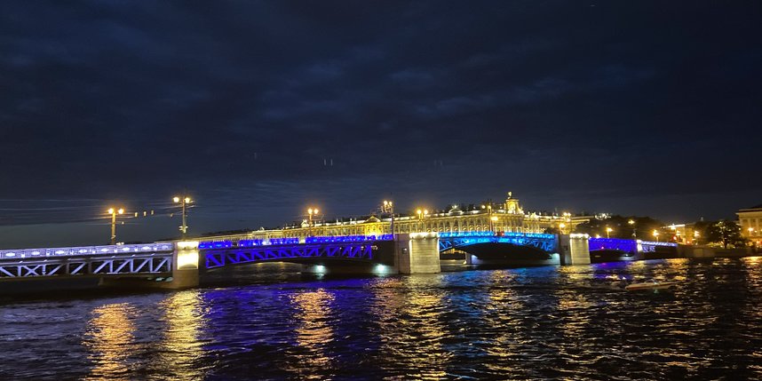 "Особая подсветка инженерных конструкций Дворцового моста и декоративное синее оформление фонарей на Большом проспекте Петроградской стороны будут работать две ночи – 6 и 7 июля с 23 до 3 часов", - сообщили в Ленсвете.