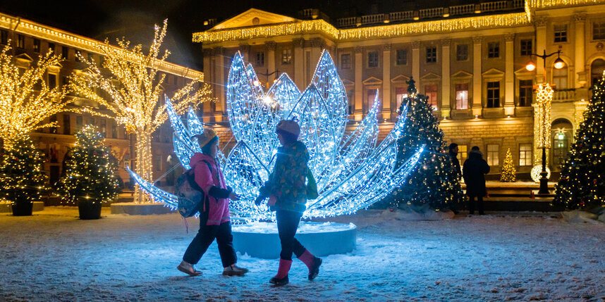 Украшены Невский проспект, большинство мостов через Неву, Фонтанку, Мойку и канал Грибоедова. На Исаакиевскую площадь вернулся сказочный новогодний сад с лотосом, пальмами и ёлками, на Большую Конюшенную – светящиеся арки, к Эрмитажу – разноцветный фонтан.