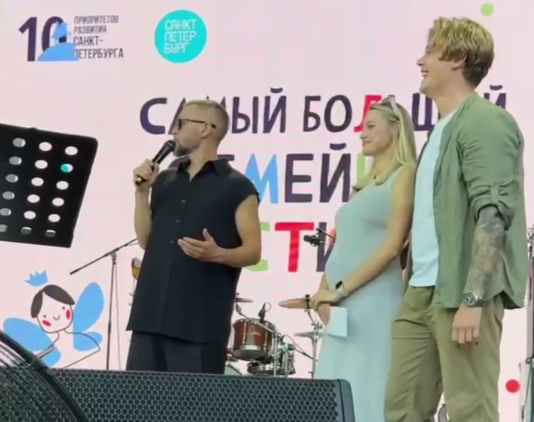 В субботу на Главном Большом семейном фестивале в Парке 300-летия солисту Uma2rman Владимиру Кристовскому выпал шанс поучаствовать в одном из самых трогательных моментов для будущих родителей.