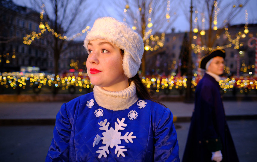 Рождественская ярмарка на Манежной площади начала работать в полдень четверга, 12 декабря. За несколько часов до открытия здесь уже собрались петербуржцы.