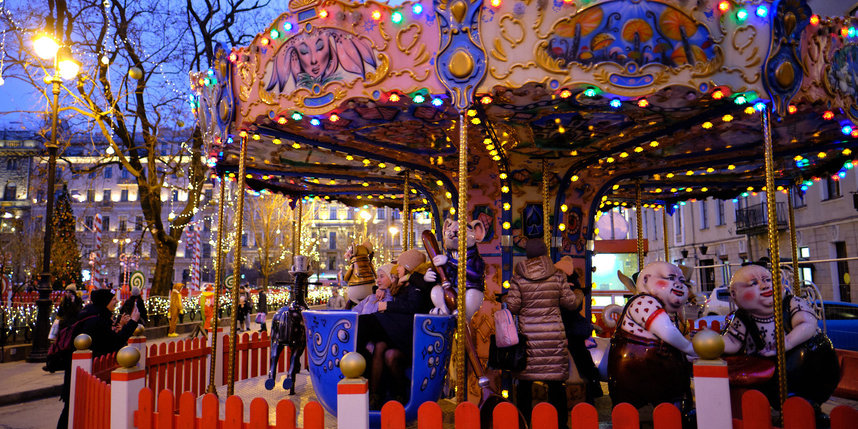 Петербургская ярмарка в этом году очень похожа на самые лучшие европейские: идти сюда лучше всего после четырёх часов дня – когда включают невероятно красивое освещение – гирлянды, огни и ёлочные украшения. Оформлена Манежная по мотивам новогоднего "Щелкунчика": хвостатые трубачи вокруг ёлки и главный герой сказки, разгуливающий в компании Деда Мороза и Снегурочки по площади, иглу для мышей. Сюда обязательно нужно привести детей: уже работают две карусели, паровозик и аниматоры.