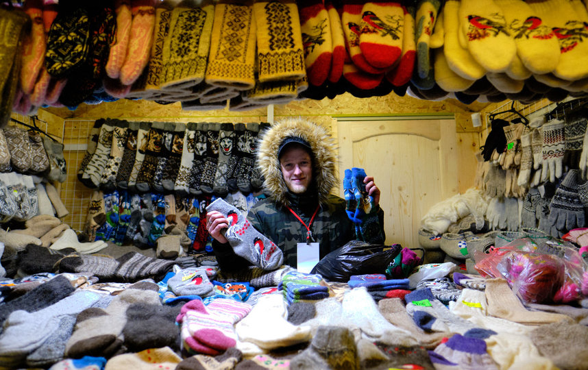 Самые нетерпеливые покупатели – и посетители! – сразу после открытия заполнили ярмарочную площадь, хотя ещё даже не все продавцы были готовы их принять. Очереди выстроились за мясными деликатесами, много заинтересованных петербуржцев собиралось у лавок с варежками и прочими изделиями "шерстяной промышленности". Всего на Манежной площади уже работают 53 лавки и 10 точек, в том числе с горячей едой: здесь можно купить и еду – от солёных груздей до сладостей из сибирского кедрового ореха, и вполне недорогие сувениры: глазурованная глиняная кружка с мышкой обойдётся всего в 250 рублей.