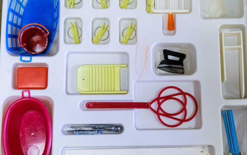Пока взрослые мальчики гоняют на машинах и стреляют, девочки могут достать из шкафа посудку для кукол или набор для уборки "Белоснежка", а также воспользоваться швейной машинкой.