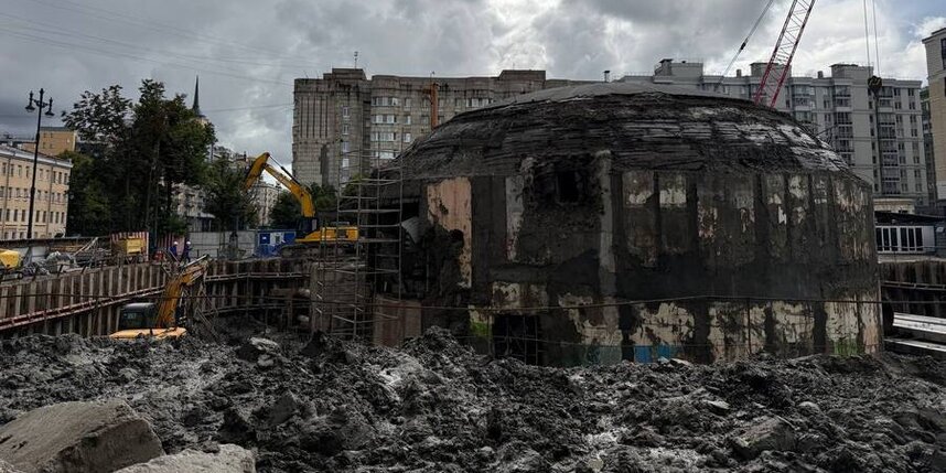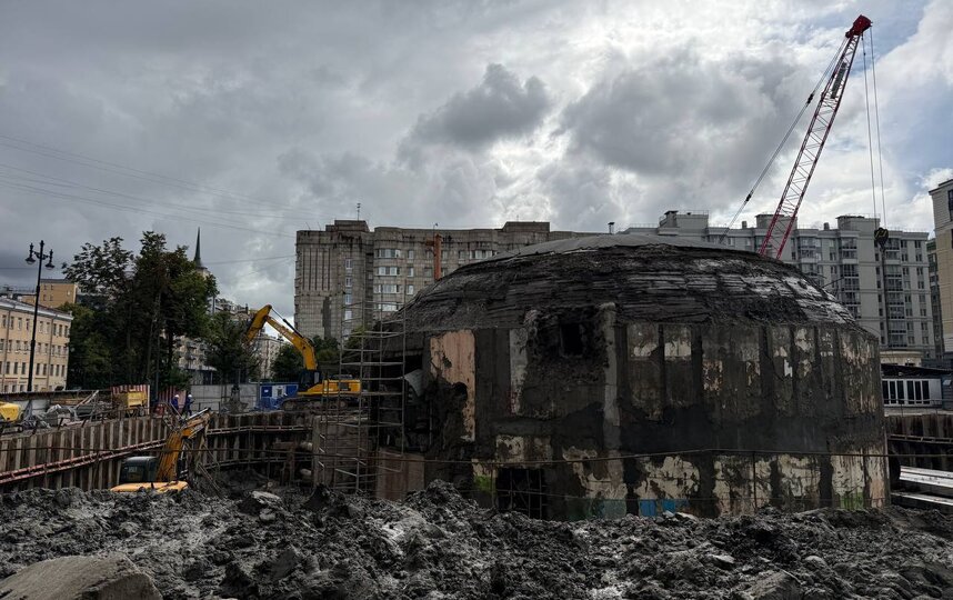 Вокруг строительной площадки уже уложили фундамент из буронабивных свай для дальнейшего строительства вестибюля. По периметру растянулось шпунтовое ограждение.