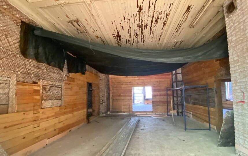 На данным момент специалисты уже проделали работу по реставрации несущих стен здания и фундамента.